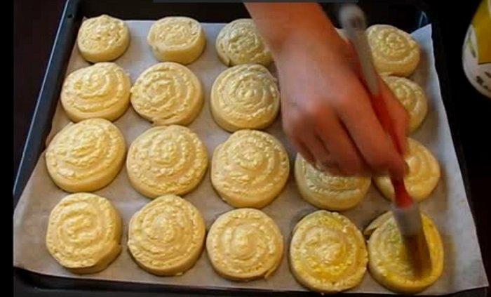 Po ułożeniu przykryj blachę ściereczką i pozostaw na 40 minut (w tym czasie, trochę wyrosną). WAŻNE: PRZED WŁOŻENIEM DO PIEKARNIKA, POSMARUJ JE ROZTRZEPANYM JAJKIEM!