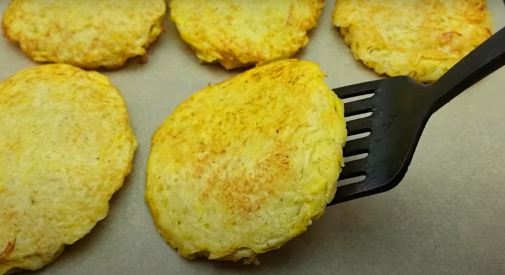 Gotowe placki układaj na papierowych ręcznikach, aby odsączyć nadmiar tłuszczu. Tak przygotowane placki, wyłóż na blachę z papierem do pieczenia. Piekarnik nagrzej do 180C i piecz około 20-25 minut.