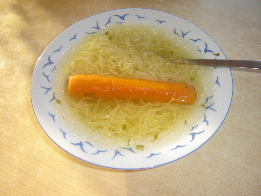 Zmniejszamy ogień pod garnkiem i gotujemy pod przykryciem przez około półtorej godziny. W przypadku wyparowania wody, można ją uzupełnić. Po półtorej godziny należy wyjąć warzywa i kurczaka. Mięso i warzywa kroimy na nieduże kawałki. Można serwować z makaronem.